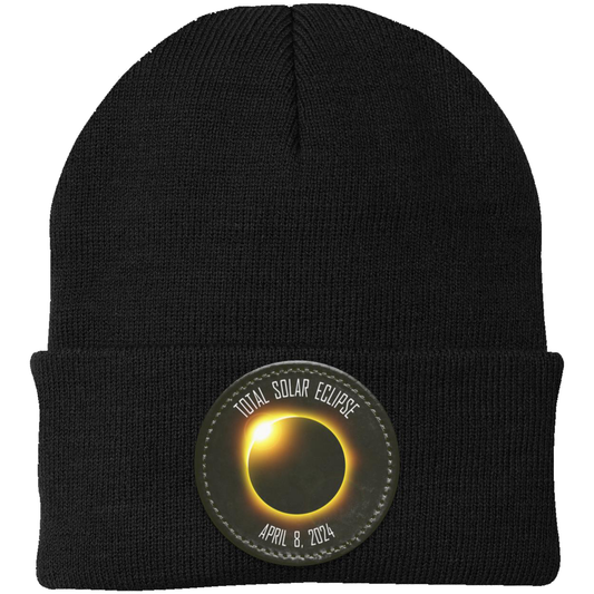 Total Solar Eclipse beanie, 2024 eclipse, April 8 2024 solar eclipse gifts, Knit Cap - Patch