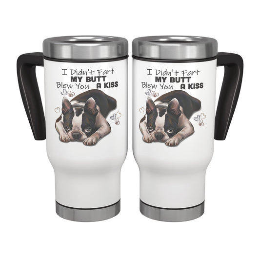 Boston Terrier Travel Mug, I Didn't Fart My Butt Blew You A Kiss