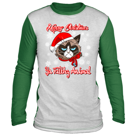 Cat Christmas shirt, Merry Christmas Ya Filthy Animal, funny Ugly Christmas ‘sweater’ Long Sleeve