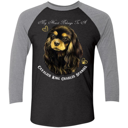 Cavalier King Charles Spaniel Black Tan My Heart Baseball Raglan T-Shirt