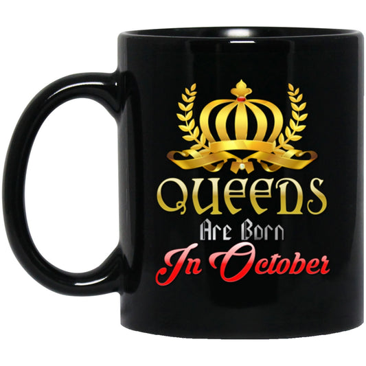 Queens Are Born In October Mug Birthday Black Coffee Mugs