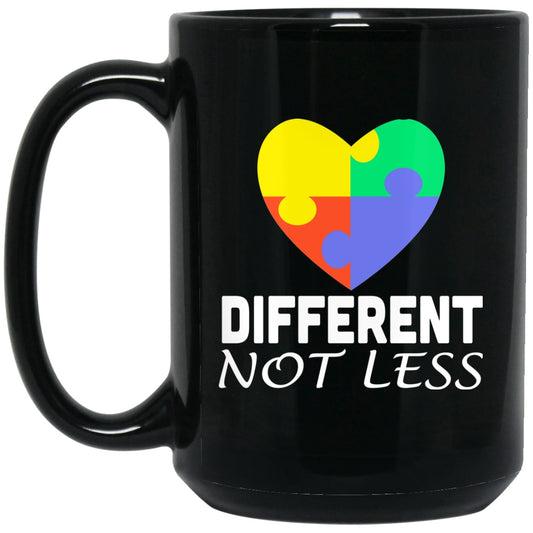 Autism Awareness Mug Different Not Less Heart jigsaw puzzle pieces Black Coffee Mugs
