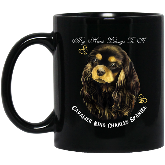 Black Cavalier King Charles Spaniel Gifts - My Heart Black And Tan Cavalier Black Coffee Mugs Mugs