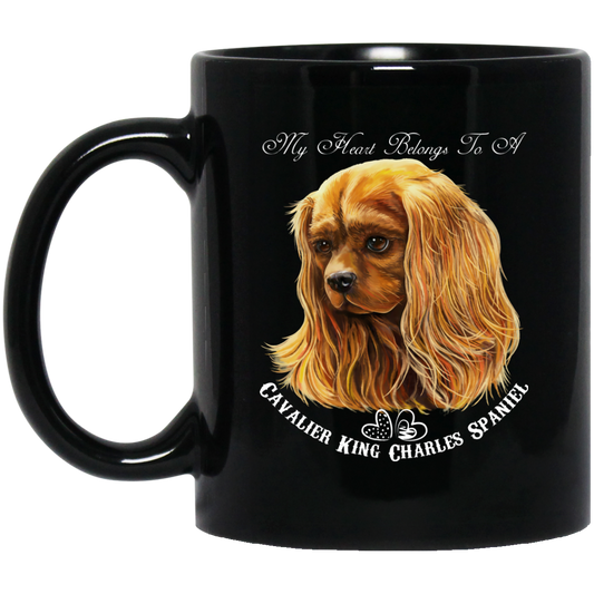 Cavalier King Charles Spaniel Gifts - My Heart Ruby Cavalier Black Coffee Mugs
