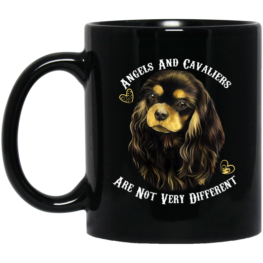 Cavalier King Charles Spaniel Gifts - Cavaliers And Angels Tan And Black Cavalier Black Coffee Mug