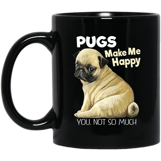 Pug Mug - Pugs Make Me Happy Black Coffee Mugs